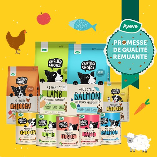 Tous les aliments pour chiens Aveve, Optima+ ou Charlie’s Choice tiennent notre promesse de qualité récompensée