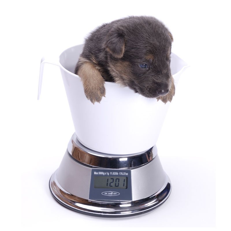 Balance Le poids des chiots vous indique s’ils mangent suffisamment. Pesez-les tous les jours à la même heure. Certains chiots maigrissent encore le lendemain de leur naissance, mais après ils doivent prendre du poids chaque jour. Le cas échéant, donnez-leur du lait pour chiot en complément.