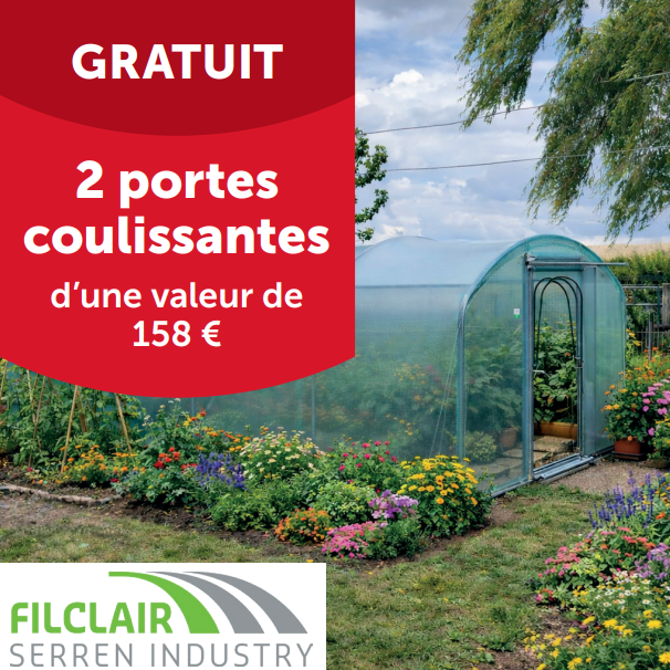2 portes coulissantes (d’une valeur de 158 €) offertes à l’achat d’une serre Filclair Splendid