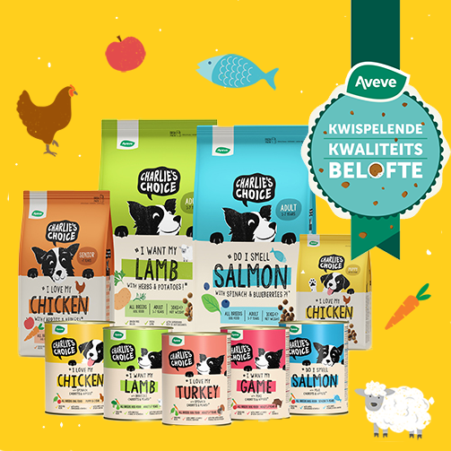 Elke hondenvoeding van Aveve, Optima+ of Charlie’s Choice maakt onze kwispelende kwaliteitsbelofte waar