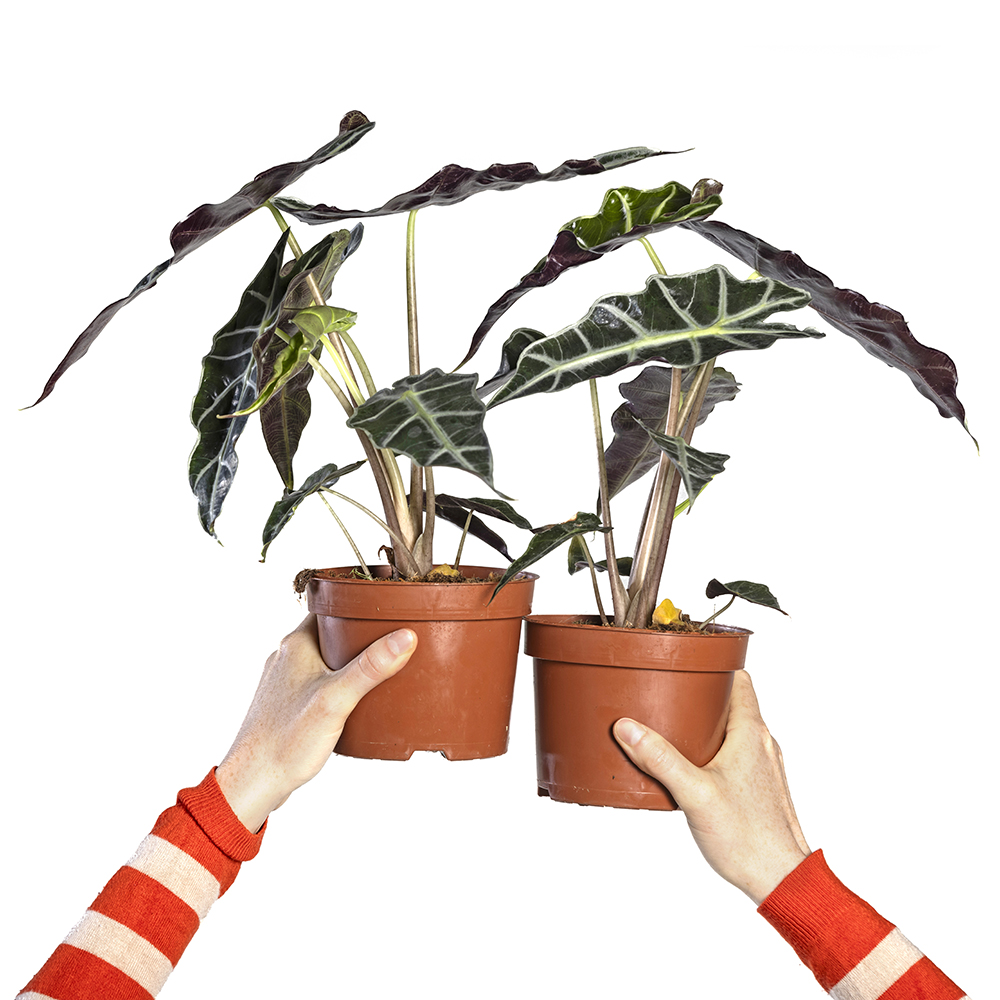 Alocasia’s zijn niet eenvoudig te stekken. Soms groeien aan een gezonde plant na een tijdje jonge scheutjes die je voorzichtig van de moederplant scheidt. Plant de jonge plantjes in verse potgrond.