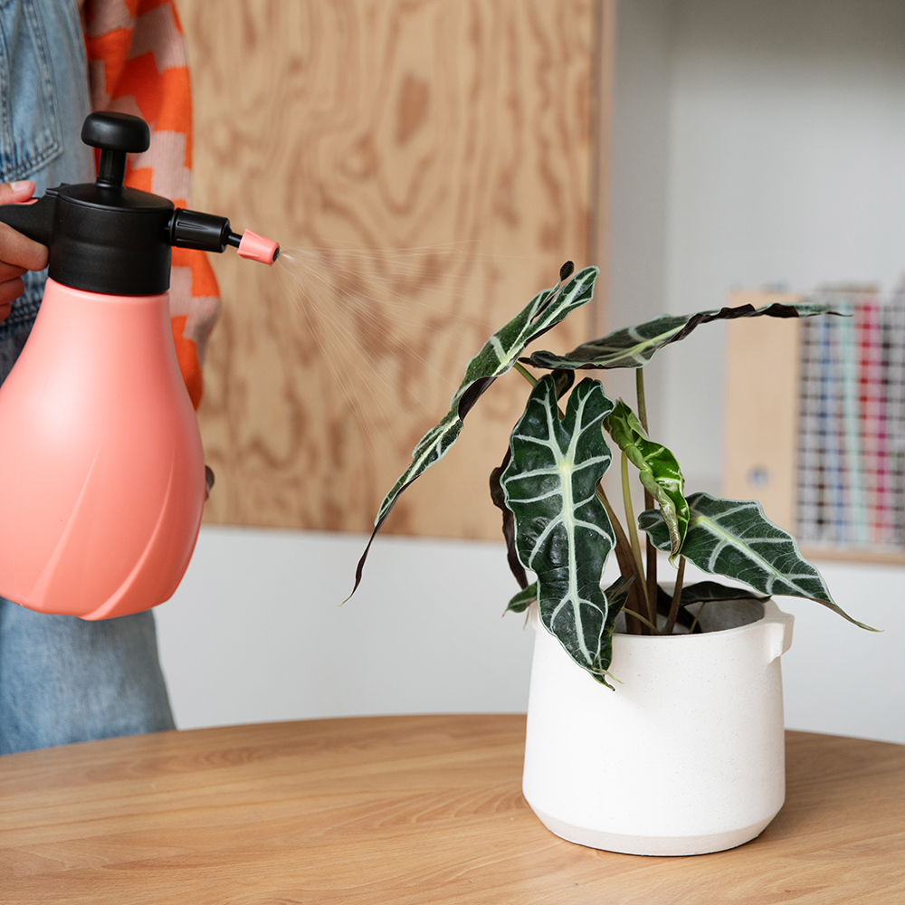 Een Alocasia de juiste hoeveelheid water geven is heel simpel. Je voelt regelmatig met je vingers of de potgrond licht vochtig is. Voelt de potgrond droog aan? Dan heeft je plant dorst en geef je ‘m een scheutje water.