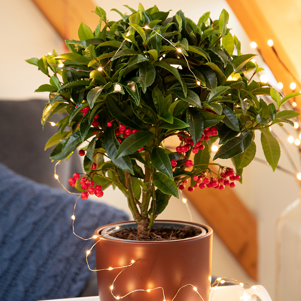Is de bestuiving gelukt? Dan komen in november de bessen tevoorschijn. Eerst geel, daarna kleuren ze dieprood. Kerstvibes gegarandeerd.