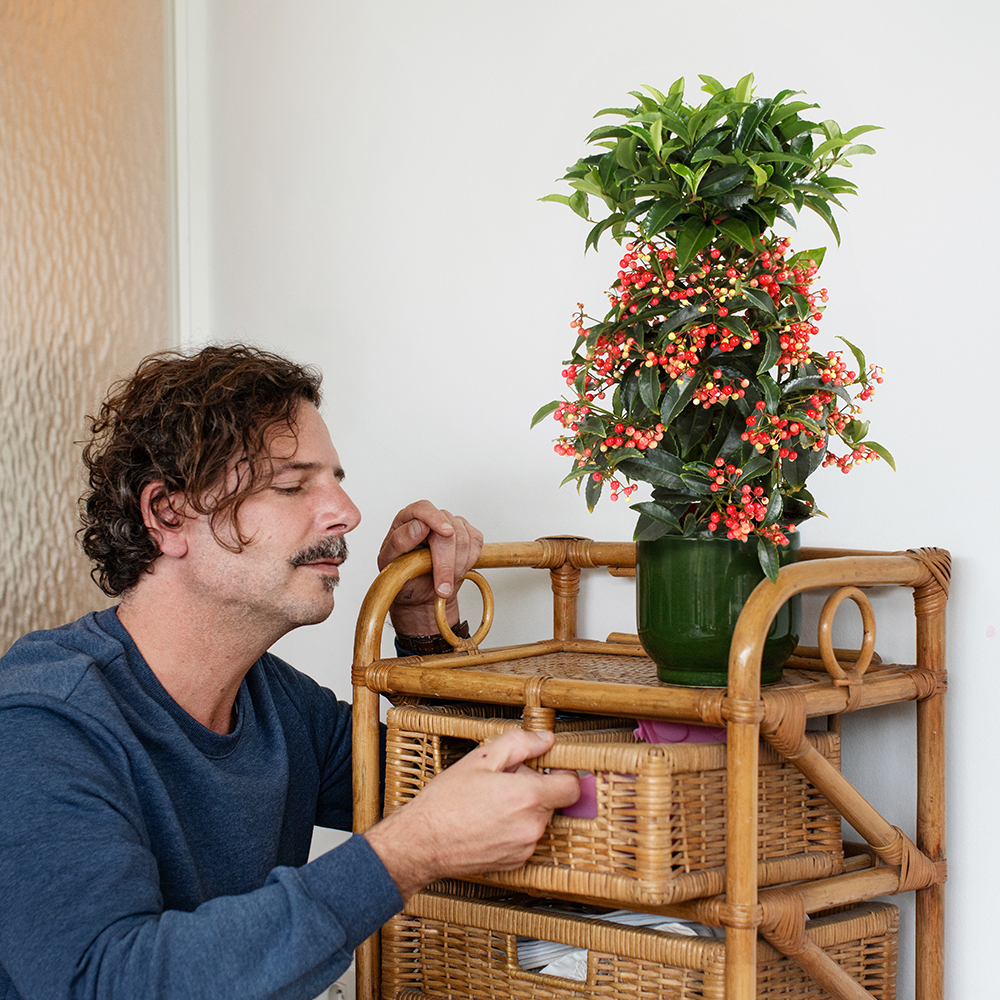 Meestal koop je deze beauty in de winter, inclusief bessen, voor extra kerstsfeer in huis. Verzorg je ’m goed, dan blijven de bessen de hele winter aan de plant. Soms hangen ze er nog wanneer je Ardisia opnieuw begint te bloeien.